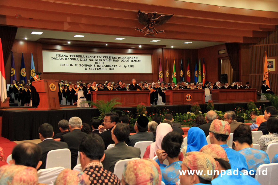 Hal tersebut diungkapkan Rektor Unpad, Prof. Ganjar Kurnia ketika memberikan pidato berkenaan dengan Dies Natalis ke-55 Universitas Padjadjaran di Aula Grha Sanusi Hardjadinata, Selasa (11/09). Peringatan Dies Natalis di tahun ini sendiri mengangkat tema “55 tahun Unpad: Excellence for Indonesia”, sebuah tema yang memiliki harapan untuk menjadikan Unpad sebagai institusi yang berperan penting bagi kemajuan negeri Indonesia.