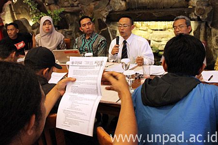 Ketua Lembaga Penelitian dan Pengabdian Masyarakat, Prof. Dr. Wawan Hermawan, M.S., saat memberi keterangan kepada wartawan terkait pelaksanaan Pekan Ilmiah Unpad 2012 (Foto: Dadan T.)