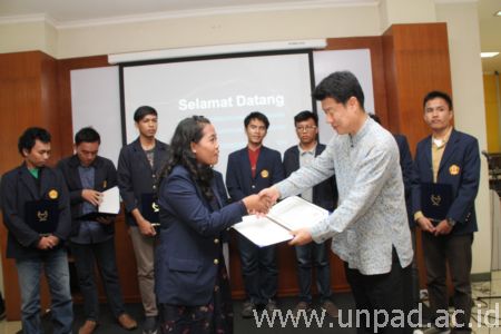 [Unpad.ac.id, 11/03/2013] Korea Exchange Bank (KEB) dan Hana Bank Sholarship Foundation memberikan beasiswa kepada 10 orang mahasiswa di Unpad. Pemberian beasiswa diserahkan secara simbolis oleh Presiden KEB Indonesia, Cho Yong Woo, Jumat (08/03) di Ruang Executive Lounge Kampus Unpad Bandung.