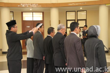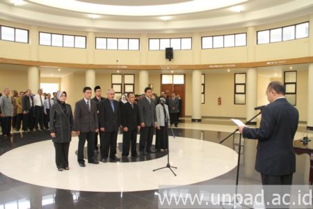 Pelantikan tersebut dilakukan berdasarkan surat keputusan Rektor No. 1661/UN6.RKT/KP/2013 tentang Pemberhentian dan Pengangkatan Kepala Bagian dan Kepala Subbagian di lingkungan Unpad. Rektor pun membacakan sumpah jabatan yang diikuti oleh para Kabag. Acara pelantikan ini juga disaksikan langsung oleh para Wakil Rektor, Dekan, dan staf di lingkungan Unpad.