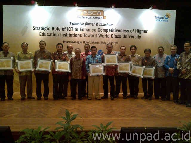 [Unpad.ac.id, 2/05/2013] Unpad berada di peringkat 4 secara nasional dalam ajang pemberian penghargaan Telkom Smart Campus Award (TeSCA) 2013. TeSCA merupakan upaya perhitungan indeks dan pemeringkatan sekaligus pemetaan kampus berdasarkan tingkat implementasi Teknologi Informasi dan Komunikasi dalam kegiatan pendidikannya.