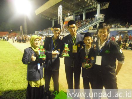 [Unpad.ac.id, 1/07/2013] Kafilah Unpad berhasil meraih tiga gelar juara pada Musabaqah Tilawatil Quran (MTQ) Mahasiswa Nasional XIII 2013 yang berlangsung di Universitas Andalas dan Universitas Negeri Padang, 23-29 Juni 2013 lalu. Sementara juara umum kompetisi dua tahunan ini diraih oleh Universitas Negeri Malang. MTQ Mahasiswa Nasional XIII 2013 diikuti oleh 1.416 peserta dari 126 perguruan tinggi di seluruh Indonesia.