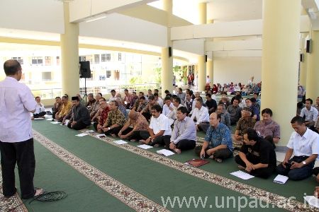 “Unpad Bersyukur” ini dihadiri langsung oleh Rektor Unpad, Prof. Ganjar Kurnia, Wakil Rektor, para dekan, dan pegawai di lingkungan Unpad. Selain ceramah, kegiatan pun diisi dengan Shalat Dzuhur berjamaah dan membaca Surah Ar-Rahman bersama-sama.*