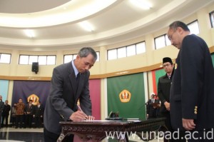 [Unpad.ac.id, 1/10/2013] Rektor Unpad, Prof. Ganjar Kurnia melantik Dekan Fakultas Hukum (FH) dan Fakultas Teknologi Industri Pertanian (FTIP) serta Wakil Dekan Fikom, FEB, FMIPA, Fkep, FTG, dan FPIK, Selasa (01/10) di Ruang Executive Lounge Gedung Rektorat  Unpad Kampus Jatinangor.