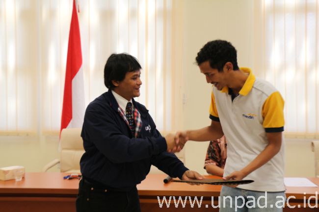 Wakil Rektor I Bidang Pembelajaran dan Kemahasiswaan Unpad,Prof. Dr. H. Engkus Kuswarno, MS., menyerahkan sertifikat kepada perwakilan dosen pendamping, Dr. Cukup Mulyana, dan Ketua Lembaga Pengembangan Kemahasiswaan dan Hubungan Alumni Unpad, Dr. Ir. Heryawan Kemal Mustafa, MSc., menyerahkan dana insentif kepada perwakilan mahasiswa, M. Nur Khawarizmi. Hadir pula pada acara tersebut Kabag Kemahasiswaan Unpad, Dadang Abdurrahim, SH., dan Kasubag Minat Penalaran dan Informasi Kemahasiswaan Unpad, Rikrik Sri Tresna S., S.Sos., MSi.