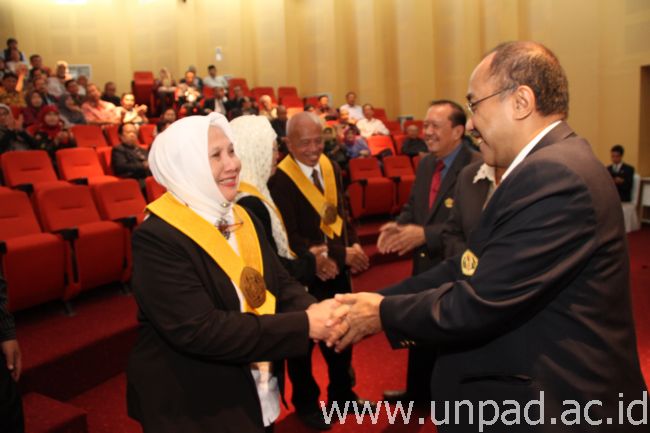 [Unpad.ac.id, 10/3/2014] Rektor sekaligus Ketua Senat Unpad, Prof. Ganjar Kurnia melantik 3 guru besar baru di lingkungan Universitas Padjadjaran. Pelantikan tersebut dilakukan pada saat Sidang Pleno Senat Unpad yang digelar pada Senin (10/3) di Bale Sawala Gedung Rektorat Unpad Kampus Jatinangor dengan disaksikan oleh Guru Besar dan Anggota Senat.