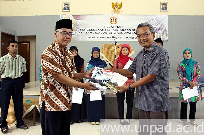[Unpad.ac.id, 2/03/2014] Program Studi Ilmu Informasi dan Perpustakaan Fakultas Ilmu Komunikasi Unpad menggelar pelatihan Pengelolaan Pepustakaan Sekolah di Kecamatan Cigalontang Kabupaten Tasikmalaya. Pelatihan yang diikuti sekira 60 Guru SD hingga SMA tersebut dilaksanakan selama dua hari pada 28 Februari dan 1 Maret 2014 di Gedung Guru Kec. Cigalontang Kab. Tasikmalaya.