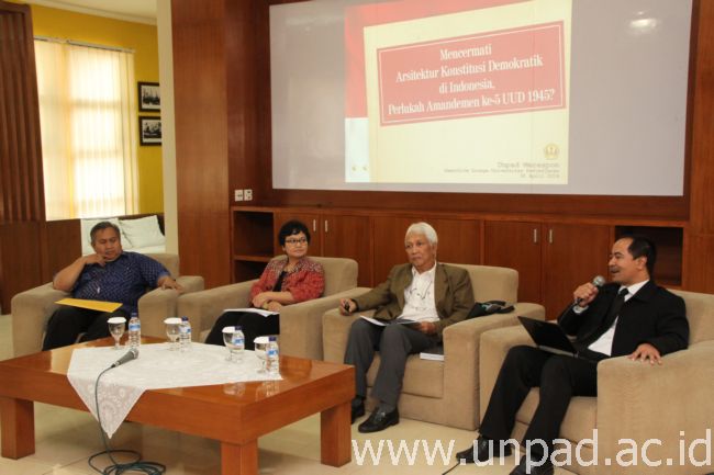 [Unpad.ac.id, 30/04/2014] Undang-undang Dasar (UUD) Republik Indonesia Tahun 1945 telah mengalami 4 kali amandemen dalam kurun waktu 1999 – 2002. Kini, pemerintah berencana kembali mengamandemen UUD untuk kelima kalinya.