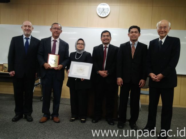 Foto bersama usai penyerahan sertifikat ABEST21 di Univesitas Tsukuba Tokyo Jepang oleh President ABEST21, Prof. Fumio Itoh dan Vice President, Prof. Oleg Vikhanski. Penghargaan diterima oleh Dekan FEB Unpad, Dr. Nury Effendi, didampingi Wakil Rektor Bidang Kerjasama dan PPM Unpad, Dr. med. Setiawan, Ketua Program Studi MM FEB Unpad, Popy Rufaidah, SE., MBA., PhD dan Sekretaris Program Studi MM FEB Unpad, Yudi Azis, SE., S.Si., S.Sos., MT., PhD. *