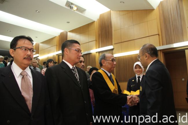 [Unpad.ac.id, 22/07/2014] Rektor sekaligus Ketua Senat Unpad, Prof. Ganjar Kurnia melantik tiga orang guru besar baru di lingkungan Unpad. Pelantikan ini dilakukan dalam Sidang Pleno Senat Unpad yang berlangsung di Bale Rumawat Unpad Kampus Iwa Koesoemasoemantri, Jalan Dipati Ukur No. 35, Bandung, Selasa (22/07). Sidang Pleno tersebut dihadiri oleh Guru Besar dan anggota Senat Unpad.