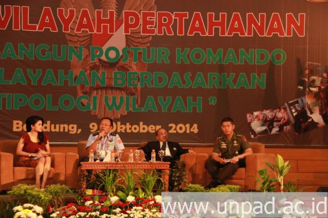 [Unpad.ac.id, 9/10/2014] Rektor Unpad, Prof. Ganjar Kurnia, berbicara di hadapan para peserta Pasis Dikreg LII Seskoad Tahun Ajaran 2014, mahasiswa, dan tamu undangan pada Seminar Nasional Studi Wilayah Pertahanan di Grha Sanusi Hardjadinata Unpad Kampus Iwa Koesoemasoemantri, Bandung, Kamis (9/10).