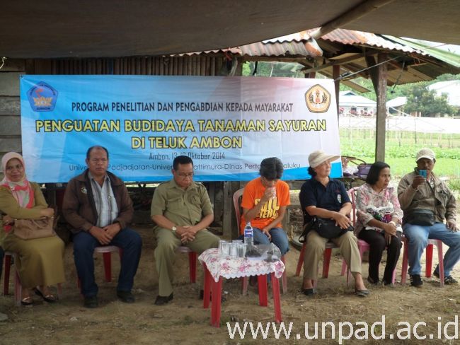 [Unpad.ac.id, 20/10/2014] Lembaga Penelitian dan Pengabdian Kepada Masyarakat (LPPM) Unpad melakukan terobosan baru dengan menyelenggarakan Program Pengabdian kepada Masyarakat di Luar Jawa. Prof. Tino Mutiarawati dan Dr. Reginawanti Hindersah dari Fakultas Pertanian mengawalinya di Provinsi Maluku. Melalui kesepakatan dengan Universitas Pattimura serta Dinas Pertanian Maluku dan Kota Ambon, PKM Unpad di Teluk Ambon terwujud. Fokus PKM Unpad di Maluku tahun 2014 adalah “Penguatan Budidaya Tanaman Sayuran” di desa Waiheru Kecamatan Teluk Ambon. Komitmen pelaksana adalah melakukan PKM sambil melakukan penelitian untuk mengaplikasikan teknologi milik Unpad.
