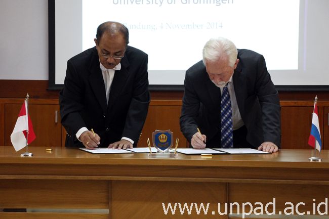 Penandatanganan dilakukan oleh Rektor Unpad, Prof. Ganjar Kurnia, dengan President University of Groningen, Prof. Sibrandes Poppema dan disaksikan oleh pimpinan universitas dan fakultas, serta para tamu undangan. Dalam kesempatan tersebut, Prof. Sibrandes juga memaparkan mengenai profil University of Groningen.