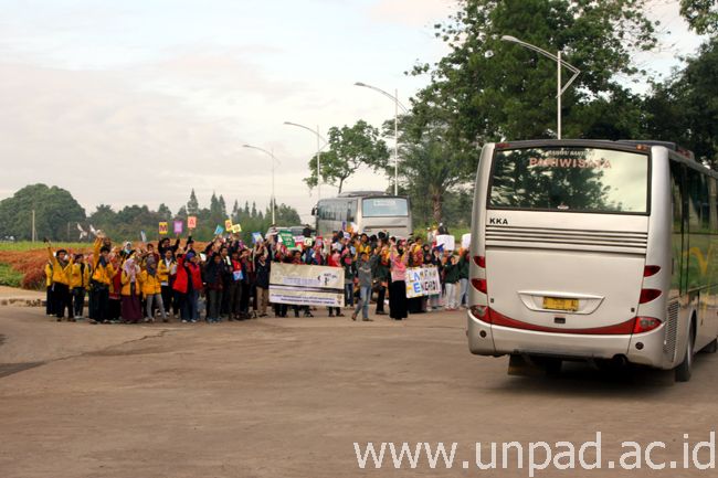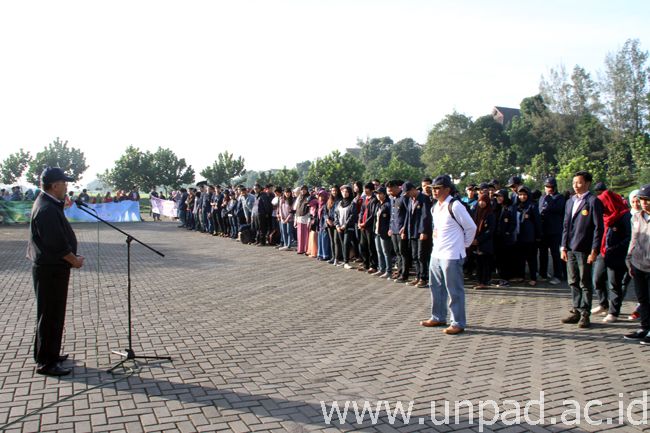 [Unpad.ac.id, 6/01/2014] Rektor Unpad, Prof. Ganjar Kurnia, melepas peserta Kuliah Kerja Nyata Mahasiswa (KKNM)-PPMD Integratif Gelombang I Periode Januari-Februari 2015, Selasa (6/01) pagi di Lapangan Parkir PPBS Unpad Kampus Jatinangor. Sebanyak 3.867 mahasiswa Unpad mengikuti KKNM periode ini.
