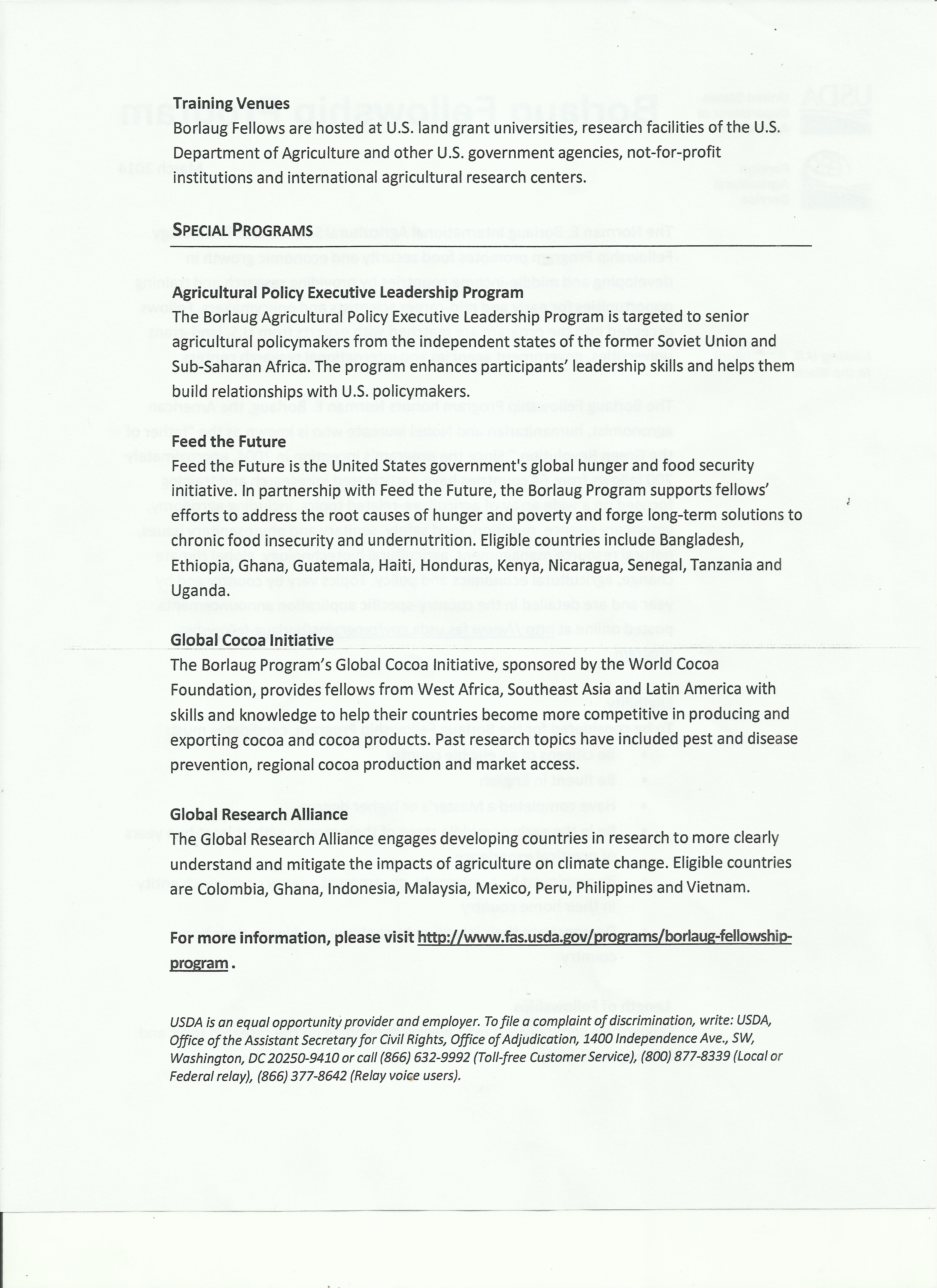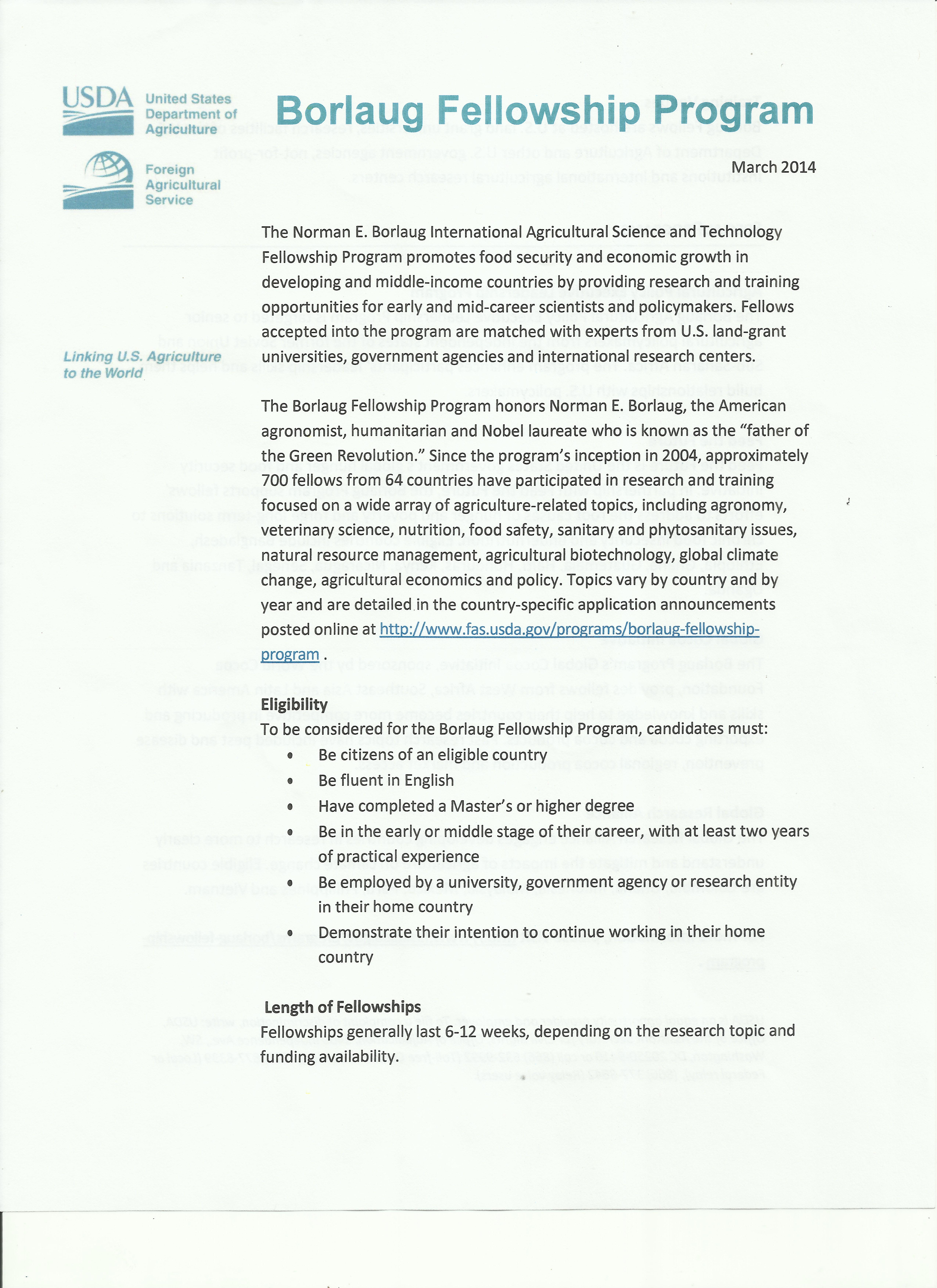 Informasi lengkap terkait program tersebut, dapat diperoleh di Kantor Urusan Internasional Unpad atau membuka http://www.fas.usda.gov/programs/borlaug-fellowship-program