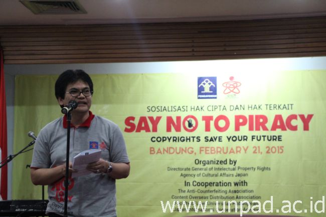 Hal tersebut disampaikan Direktur Jenderal Hak Kekayaan Intelektual, Kementerian Hukum dan HAM RI sekaligus Guru Besar Fakultas Hukum (FH) Unpad, Prof. Ahmad M. Ramli, pada acara Sosialisasi Hak Cipta dan Hak Terkait “Say No To Piracy: Copyrights Save Your Future”. Acara yang terselenggara atas kerja sama FH Unpad dengan Japan Copyright Office, Content Overseas Distribution Association (CODA) Jepang, dan Japan International Corporation Agency (JICA) tersebut digelar di Auditorium Gedung Mochtar Kusumaatmadja, kampus FH Unpad, Jln. Dipati Ukur No. 35 Bandung, Sabtu (21/02).