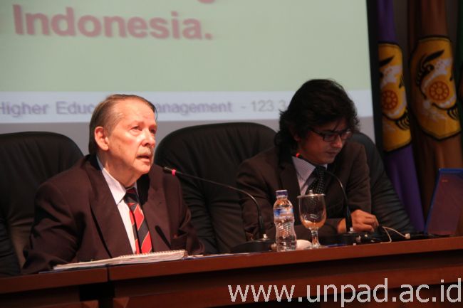 [Unpad.ac.id, 23/03/2015] Direktur The Leiden Ethnosystems and Development (LEAD) Programme, Prof. Dr. L. J. Slikkerveer memberikan presentasi mengenai pengelolaan manajemen perguruan tinggi kepada para Kepala Bagian, Kepala Subbagian, dan tenaga kependidikan di lingkungan Unpad, Senin (23/03) di Bale Sawala Unpad Kampus Jatinangor.