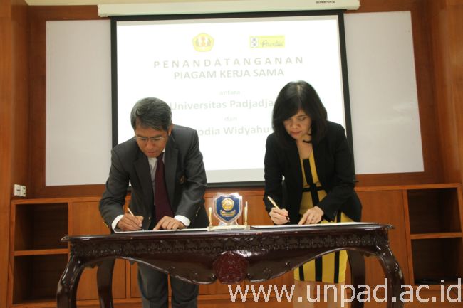 [Unpad.ac.id, 20/04/2015] Universitas Padjadjaran melakukan kerja sama dengan PT. Prodia Widyahusada yang ditandai dengan penandatanganan Memorandum of Understanding (MoU) di Ruang Executive Lounge Gedung 2 Unpad, Jln. Dipati Ukur No. 35 Bandung, Senin (20/04). Penandatanganan MoU dilakukan oleh Rektor Unpad, Prof. Dr. med. Tri Hanggono Achmad, dr. dengan Direktur Utama PT. Prodia Widyahusada, Dr. Dewi Muliaty, M.Si.