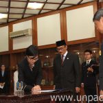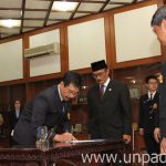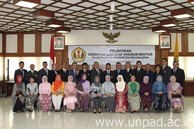 [Unpad.ac.id, 21/09/2015] Rektor Universitas Padjadjaran, Prof. Dr. med. Tri Hanggono Achmad, dr. melantik sejumlah Direktur dan Staf Khusus Rektor di lingkungan Unpad di Ruang Serba Guna Lantai 3 Gedung 1 Unpad, Jln. Dipati Ukur. No. 35 Bandung, Senin (21/09). Pelantikan ini dilakukan sebagai salah satu tindak lanjut dari ditetapkannya Peraturan Rektor Nomor 70 tahun 2015 tentang Organisasi dan Tata Kerja Pengelola Universitas Padjadjaran.