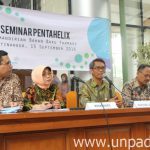 “Prinsip-prinsip saling ketergantungan, itu sudah menjadi keniscayaaan. Kita memulainya bersama-sama paling tidak dari unsur yang kelembagaannya sudah terlihat jelas, yaitu para akademisi, sektor bisnis, pemerintah, masyarakat, dan yang tidak kalah pentingnya adalah sektor media,” ujar Rektor.