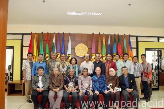 Foto bersama Rektor Universitas Padjadjaran, Prof. Tri Hanggono Achmad beserta jajarannya dengan Direktur PT Mikromine Indonesia Perdana (Micromine). (Foto oleh : Tedi Yusup)*