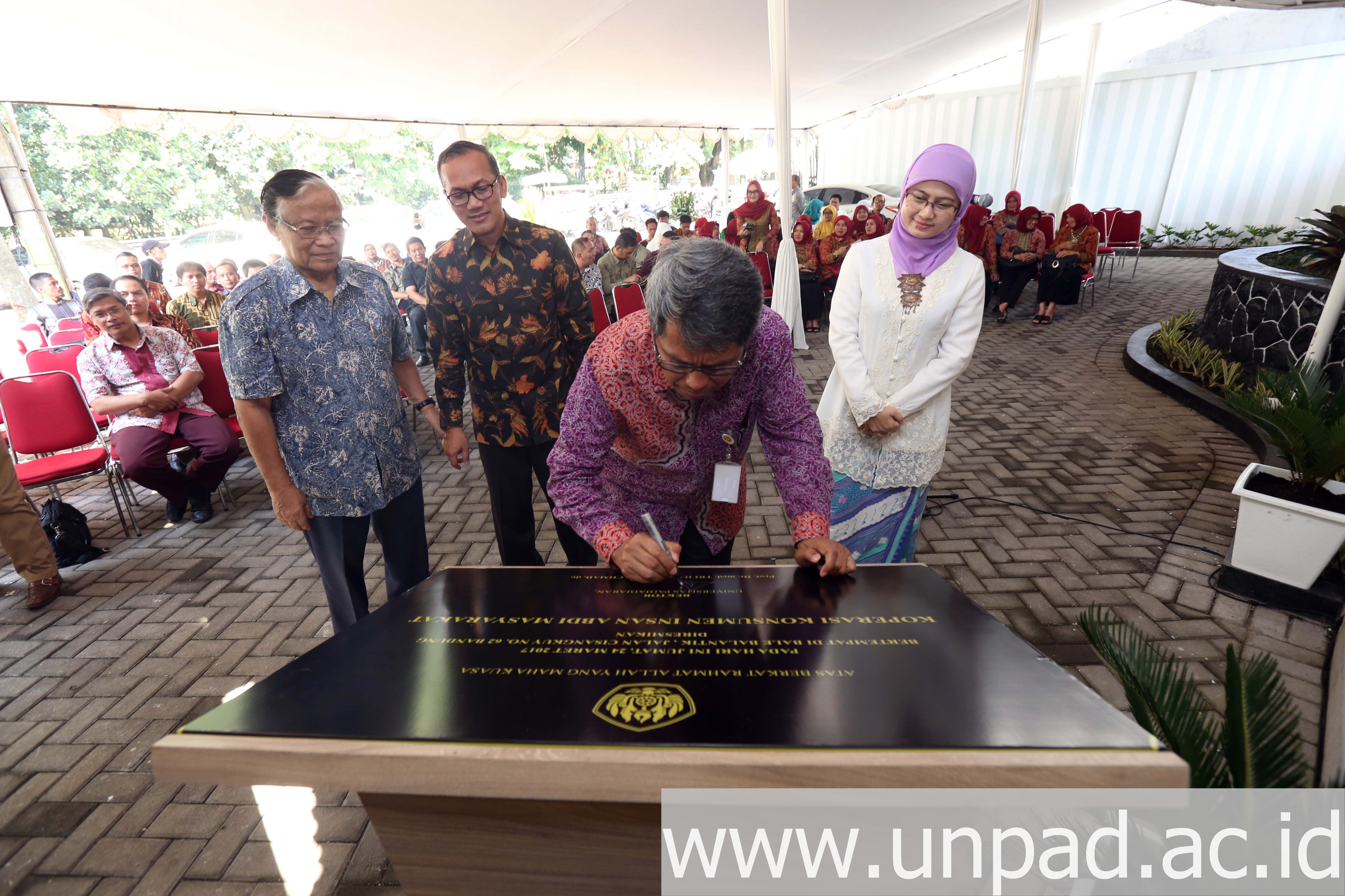[Unpad.ac.id, 24/03/2017] Rektor Universitas Padjadjaran, Prof. Tri Hanggono Achmad meresmikan Koperasi Konsumen Insan Abdi Masyarakat (KK IAM), di Bale Balantik, Jln. Cisangkuy No. 62 Bandung, Jumat (24/03).  Peresmian ditandai dengan penandatanganan prasasti oleh Rektor, disaksikan oleh Rektor Ketujuh Unpad Prof. Dr. Yuyun Wirasasmita, M.Sc., dan Ketua Pengurus Koperasi, Dian Masyita, S.E.,M.T.,PhD.