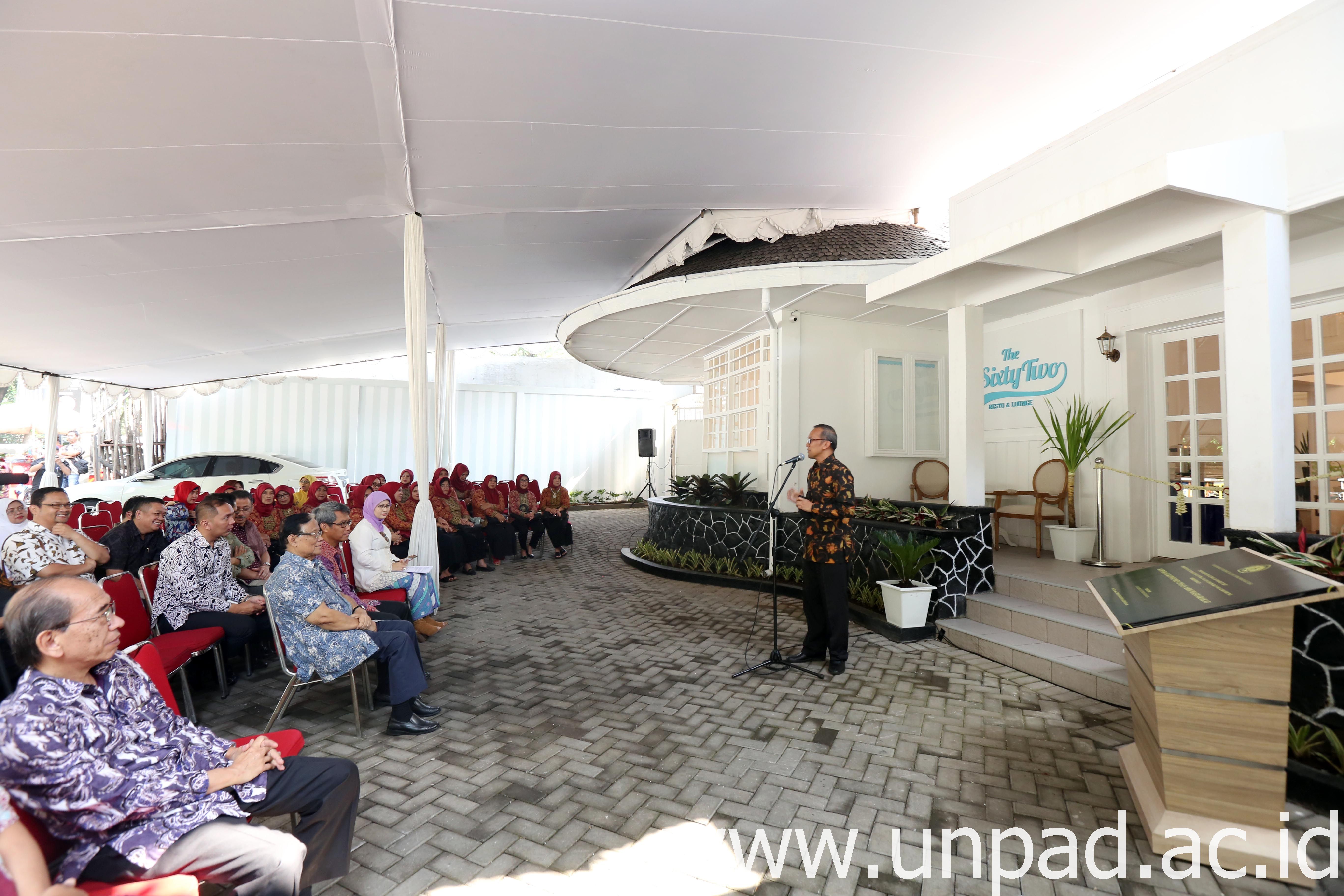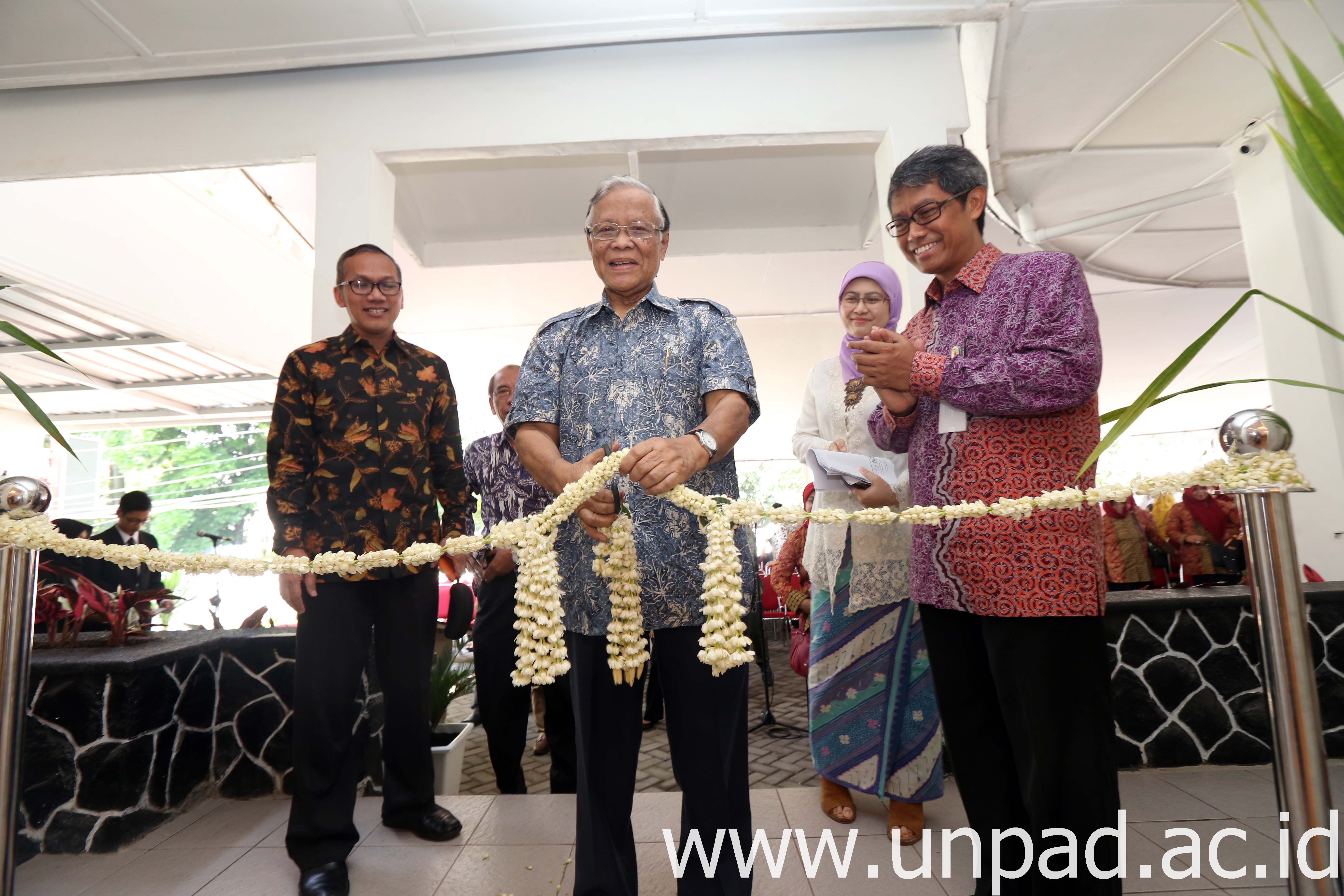 Rektor Universitas Padjadjaran, Prof. Tri Hanggono Achmad bersama Rektor Ketujuh Unpad Prof. Dr. Yuyun Wirasasmita, M.Sc., meresmikan Koperasi Konsumen Insan Abdi Masyarakat (KK IAM), di Bale Balantik, Jln. Cisangkuy No. 62 Bandung, Jumat (24/03). (Foto: Tedi Yusup)*