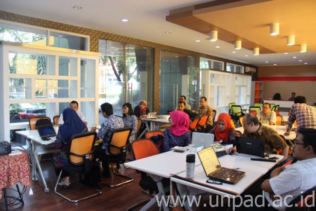 Para perwakilan dari Laboratorium dan Pusat Studi Unpad saat mengikuti workshop perhitungan Harga Pokok Penjualan (HPP) bagi Pengembangan 40 Produk Korporasi Akademik, bertempat di Bale Motekar, Jl. Banda No 40 Bandung pada Rabu (19/4).*