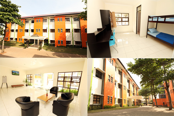 Setiap kamar memiliki fasilitas utama berupa tempat tidur, lemari, kursi, dan meja belajar. Untuk kamar mandi ada yang berada di dalam kamar, ada pula yang terletak di luar kamar. Fasilitas lainnya yaitu jaringan internet kampus, layanan laundry, penyediaan air mineral, serta kendaraan siaga 24 jam.