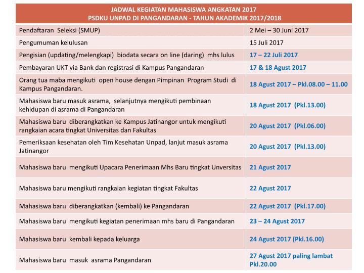 [unpad.ac.id, 25/07/2017] Jadwal registrasi calon mahasiswa baru Program Studi di Luar Kampus Utama (PSDKU) Unpad di Kabupaten Pangandaran dilaksanakan pada 17 dan 18 Agustus mendatang. Usai registrasi, mahasiswa baru langsung menempati asrama yang telah disiapkan pengelola PSDKU Unpad Pangandaran.