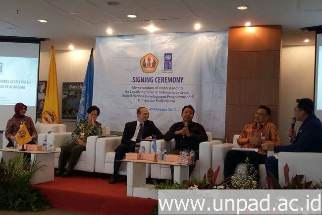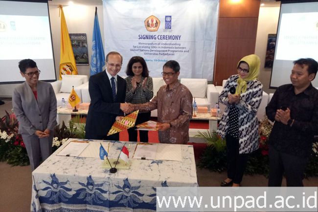 [unpad.ac.id, 19/10/2017] Universitas Padjadjaran melakukan kerja sama dengan United Nations Development Programme (UNDP) terkait implementasi tujuan pembangunan berkelanjutan (SDGs) di Indonesia. Berbagai rekomendasi kebijakan untuk pencapaian SDGs akan dihasilkan melalui kolaborasi ilmiah ini.