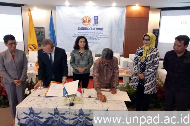 Kerja sama ini diwujudkan melalui penandatanganan Memorandum of Understanding (MoU) antara Rektor Unpad Prof. Tri Hanggono Achmad dan UNDP Country Director Indonesia Christophe Bahuet, di kantor UNDP Indonesia, Jakarta, Kamis (19/10).