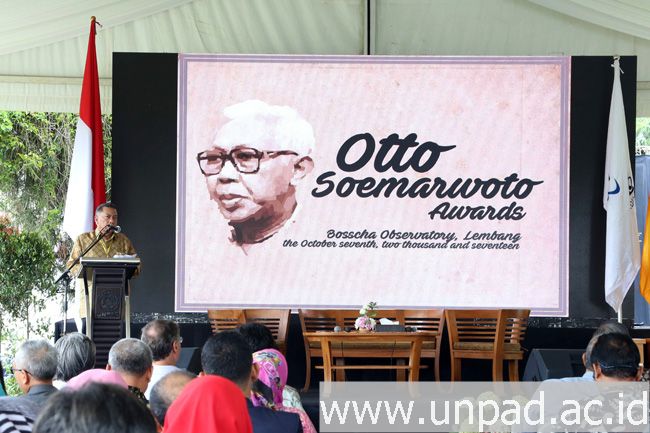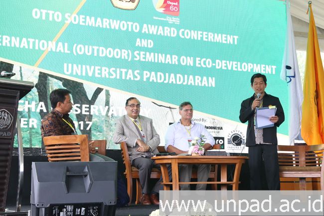 [unpad.ac.id, 7/10/2017] Senior Profesor dari United Nations University Jepang Prof. Dr. Kazuhiko Takeuchi meraih Anugerah Otto Soemarwoto Universitas Padjadjaran dalam perhelatan yang digelar di Observatorium Boscha, Lembang, Sabtu (7/10). Prof. Takeuci dinilai Unpad sebagai sosok akademisi yang penuh komitmen dan dedikasi di bidang lingkungan.