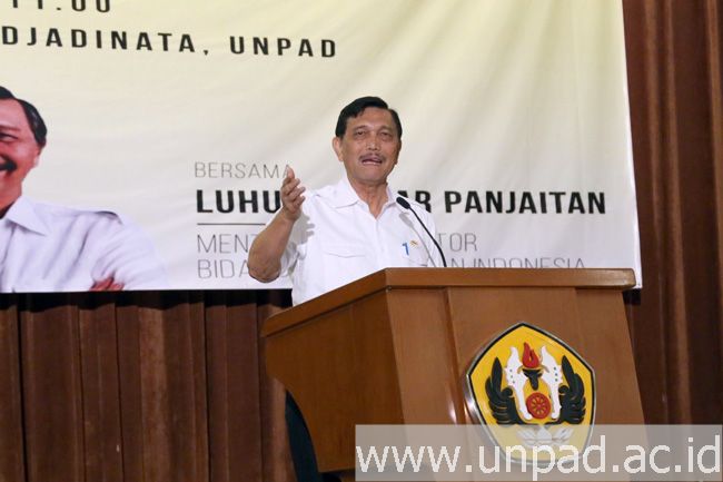 Hal tersebut dikatakan Luhut saat menjadi pembicara dalam Studium Generale “Peran Negara dalam Menjaga Sumber Daya Alam yang Digunakan sebagai Sarana Terciptanya Kesejahteraan Umum” di Grha Sanusi Hardjadinata Unpad, Jalan Dipati Ukur No. 35, Bandung, Jumat (3/11).