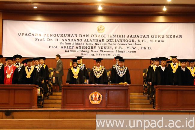 [unpad.ac.id, 8/2/2018] Rektor Universitas Padjadjaran Prof. Tri Hanggono Achmad melantik dan mengukuhkan enam guru besar baru di lingkungan Unpad. Pelantikan dan pengukuhan tersebut digelar selama dua hari berturut-turut di Grha Sanusi Hardjadinata Unpad, Jalan Dipati Ukur No. 35, Bandung, Kamis (8/2) pagi dan siang, serta Jumat (9/2) pagi.