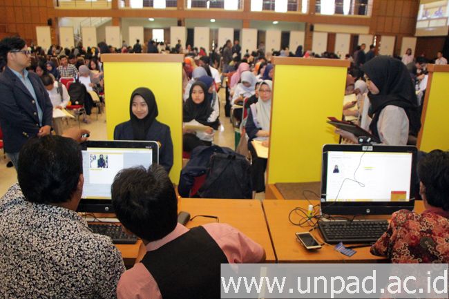 [unpad.ac.id, 8/5/2018] Universitas Padjadjaran melaksanakan registrasi administratif bagi calon mahasiswa baru tahun akademik 2018/2019 untuk jalur Seleksi Nasional Masuk Perguruan Tinggi Negeri (SNMPTN), di Aula Grha Sanusi Hardjadinata Unpad, Jalan Dipati Ukur No. 35, Bandung, Selasa (8/5). Sebanyak 2.304 calon mahasiswa diterima di Unpad dari jalur SNMPTN.
