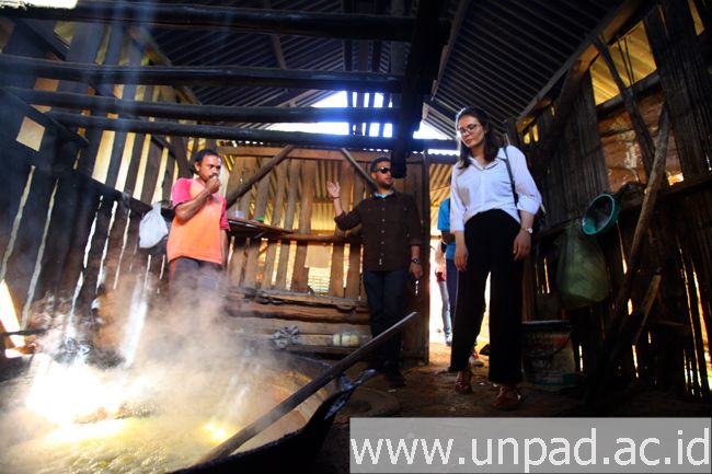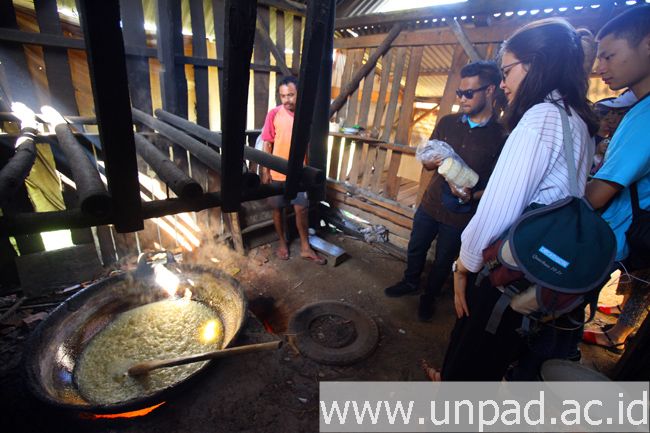 Salah seorang mahasiswa asing asal Turki peserta Unpad Summer Program 2018 sedang melihat proses pembuatan gula kelapa di kawasan Pantai Ujung Genteng, Kabupaten Sukabumi, Kamis (12/7). Tahun ini, peserta Unpad Summer Program 2018 diajak untuk melihat beragam potensi alam dan wisata di kawasan Geopark Ciletuh-Palabuhanratu dan wisata Pangandaran di Jawa Barat. (Foto: Arief Maulana)*