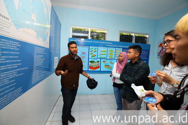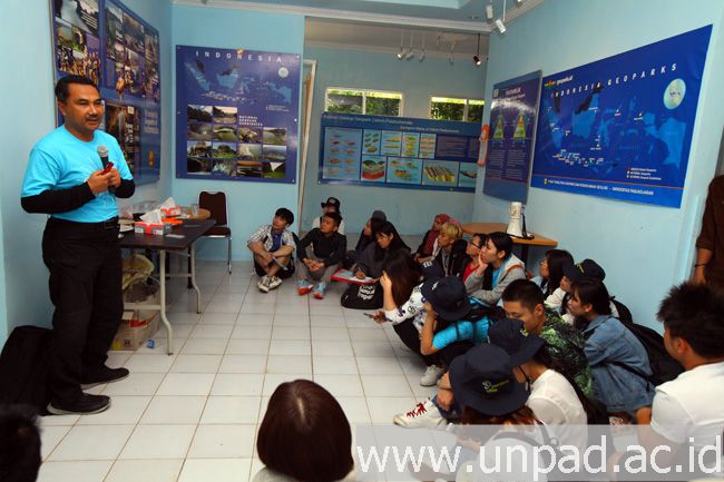 Mahasiswa juga diajak mengunjungi Bumi Walagri Padjadjaran yang saat ini digunakan sebagai gedung Pusat Penelitian Geopark dan Kebencanaan Geologi Unpad, Kamis (12/7). Dipandu dosen Fakultas Teknik Geologi Unpad, Dr. Dicky Muslim, mahasiswa diajak untuk mengetahui proses mitigasi bencana.