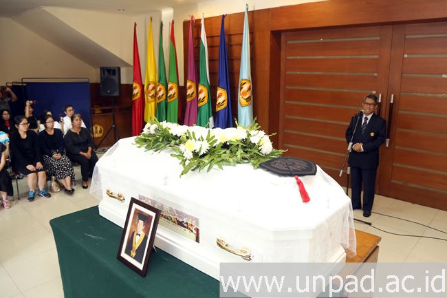 Almarhum dilepas secara resmi oleh Rektor Unpad Prof. Tri Hanggono Achmad dalam upacara yang digelar di lobi Grha Sanusi Hardjadinata Unpad, Jalan Dipati Ukur No. 35, Bandung, Senin (13/8). Turut hadir sejumlah pimpinan, dekan, keluarga dan kerabat, serta dosen, tenaga kependidikan, dan sivitas akademika FMIPA Unpad.