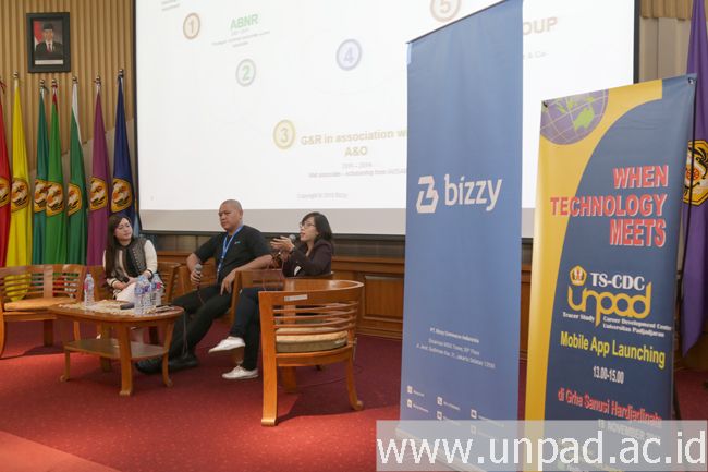 [unpad.ac.id, 11/12/2018] Sejumlah eksekutif dari perusahaan e-marketplace Bizzy berbagi informasi seputar dunia kerja kepada mahasiswa Universitas Padjadjaran dalam “Bizzy.co.id Goes to Campus”. Acara digelar Kantor Tracer Study dan Career Development Center Unpad di Bale Sawala, Gedung Rektorat Unpad kampus Jatinangor, Selasa (11/12).