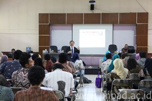 Kepala KKP Unpad Syauqy Lukman, M.S.M., menyampaikan sejumlah presentasi terkait Unpad dalam acara gelar wicara yang diikuti sejumlah peserta. Ia menyampaikan, Unpad memberi perhatian besar bagi masyarakat Jawa Barat untuk bisa melanjutkan studi ke perguruan tinggi.