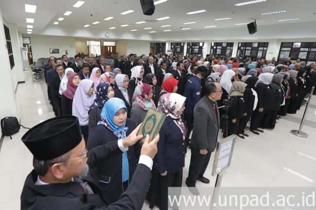 [unpad.ac.id, 23/1/2019] Sebanyak 193 pejabat fungsional Universitas Padjadjaran dilantik dan diambil sumpah jabatan oleh Rektor Unpad Prof. Tri Hanggono Achmad di Aula Fakultas Keperawatan Unpad, Jatinangor, Rabu (23/1).