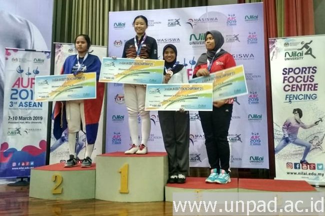Farah Fadhilah, mahasiswa Fakultas Ilmu Sosial dan Ilmu Politik Universitas Padjadjaran meraih juara III pada “3rd Asean University Fencing Championship 2019” yang diselenggarakan di Nilai University, Malaysia, 7-10 Maret 2019.*