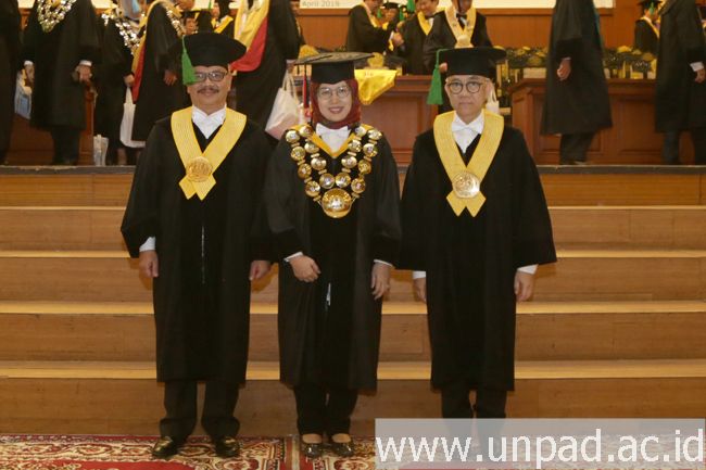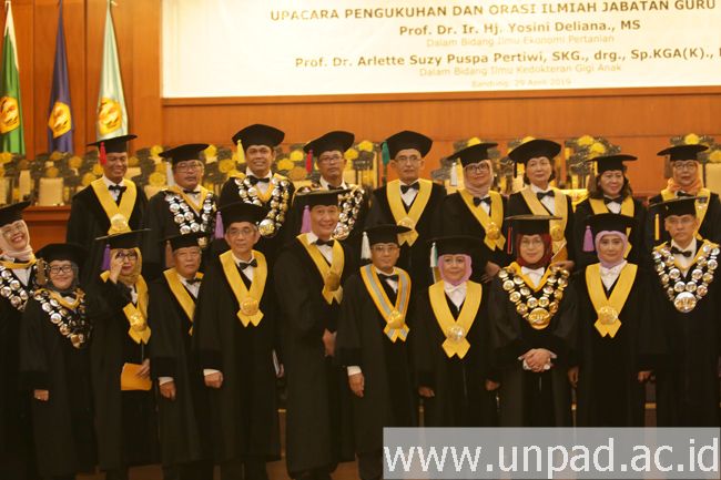 [unpad.ac.id, 29/4/2019] Pelaksana Tugas Rektor Universitas Padjadjaran Prof. Dr. Rina Indiastuti, M.SIE., mengukuhkan empat guru besar baru di lingkungan Unpad dalam Upacara Pengukuhan dan Orasi Ilmiah yang digelar di Grha Sanusi Hardjadinata Unpad, Jalan Dipati Ukur No. 35, Bandung, Senin (29/4).