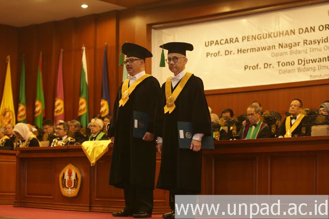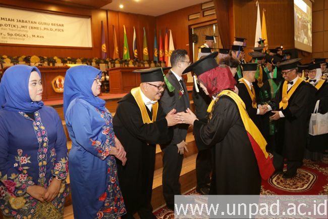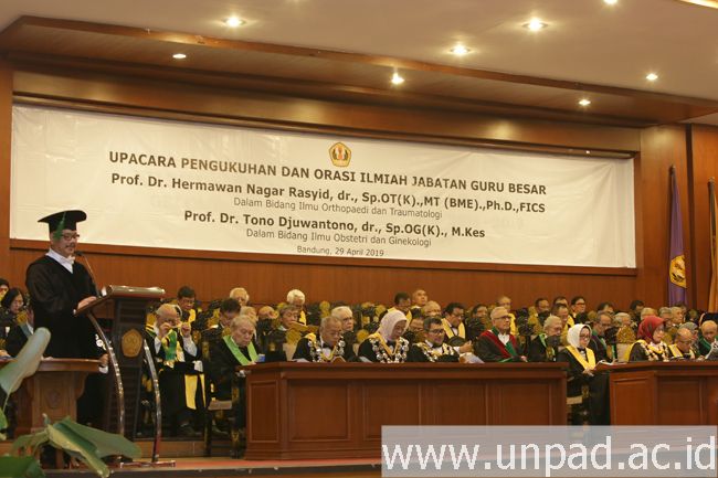 Prof. Hermawan N. Rasyid dikukuhkan sebagai guru besar pada bidang Ilmu Orthopaedi dan Traumatologi. Prof. Tono Djuwantono dikukuhkan sebagai guru besar pada bidang Ilmu Obstetri dan Ginekologi. Sementara Prof. Arlette Suzy Puspa Pertiwi dikukuhkan sebagai guru besar pada bidang Ilmu Kedokteran Gigi Anak, dan Prof. Yosini dikukuhkan sebagai guru besar pada bidang Ilmu Ekonomi Pertanian.*