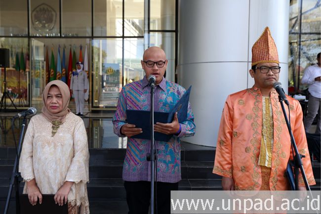 Rektor Unpad Prof. Dr. Rina Indiastuti, S.E., M.SIE. yang pada kesempatan tersebut bertindak sebagai Pembina Upacara membacakan pidato dari Menteri Pemuda dan Olah Raga RI Dr. H. Zainudin Amali, S.E., M.Si. Tahun ini Hari Sumpah Pemuda mengambil tema “Bersatu Kita Maju”.