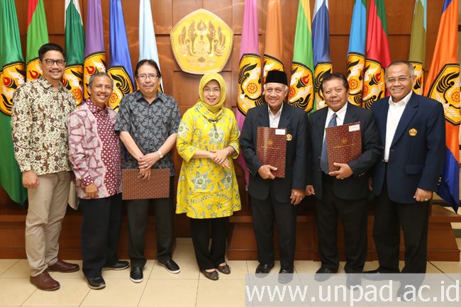 [unpad.ac.id, 18/10/2019] Rektor Universitas Padjadjaran Prof. Dr. Rina Indiastuti, M.SIE., mengangkat kembali dua guru besar purnabakti dan satu dosen purnatugas di lingkungan tugas. Pengangkatan tersebut ditandai dengan penandatanganan Surat Perjanjian Kerja yang digelar di ruang Executive Lounge Unpad, Jalan Dipati Ukur No. 35, Bandung, Jumat (18/10).