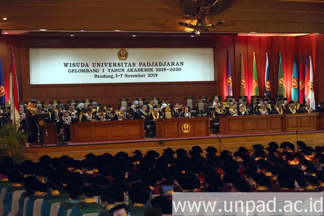 [unpad.ac.id, 5/11/2019] Rektor Universitas Padjadjaran Prof. Dr. Rina Indiastuti, S.E., M.SIE., melantik 2.893 orang wisudawan pada Wisuda Lulusan Unpad Gelombang I tahun akademik 2019/2020. Wisuda dilaksanakan dalam enam sesi di Grha Sanusi Hardjadinata Unpad, Jalan Dipati Ukur Nomor 35 Bandung, 5-7 November 2019.