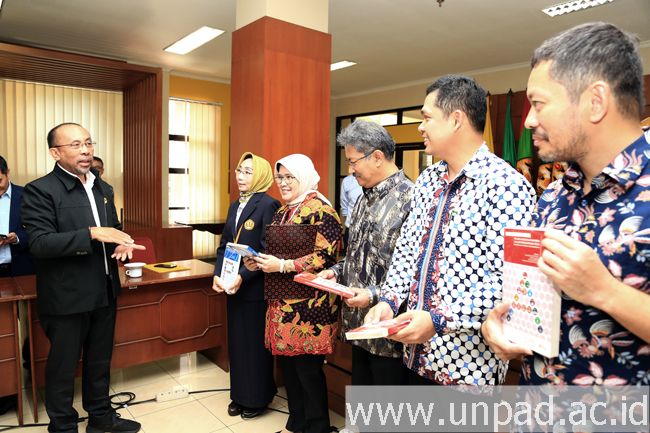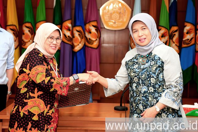 [unpad.ac.id, 12/2/2020] Rektor Universitas Padjadjaran Prof. Dr. Rina Indiastuti, M.SIE., menyerahkan Surat Keputusan Menteri Pendidikan dan Kebudayaan RI tentang Kenaikan Jabatan Akademik/Fungsional Dosen kepada lima guru besar baru di ruang Executive Lounge Unpad, Jalan Dipati Ukur No. 35, Bandung, Rabu (12/2).