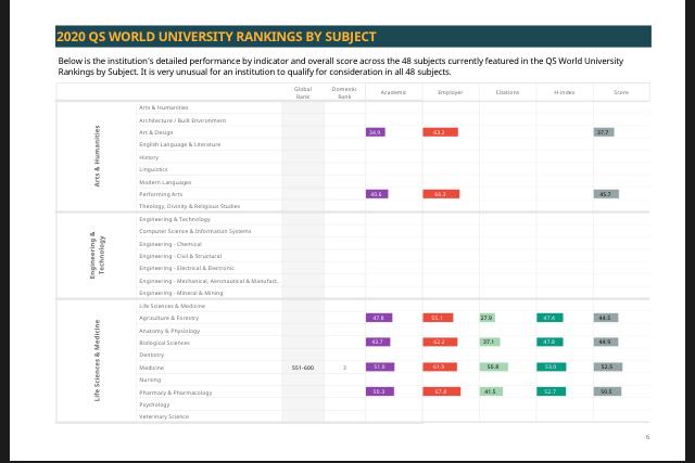 Pada kategori sosial, bidang ilmu sosio manajemen dan bidang ilmu bisnis memiliki penilaian yang cukup tinggi. Sementara pada kategori saintek, bidang ilmu kedokteran, farmasi, dan ilmu pengetahuan alam memiliki penilaian yang tinggi.